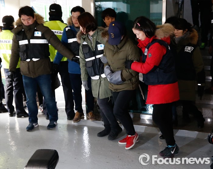 | △ 2차 현장검증 후 나서는 피의자 한모 씨 |