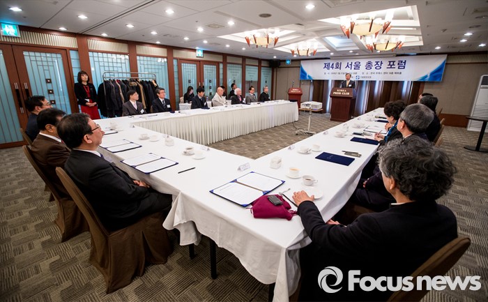 (서울=포커스뉴스) 이용구 중앙대학교 총장이 21일 오전 서울 중구 프레스센터에서 열린 '제4회 서울 총장 포럼'에서 인사말을 하고 있다.