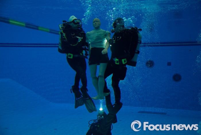 (대전=포커스뉴스) 21일 오후 대전 동구 용운국제수영장에서 충북 영동소방서 구조대원들이 동계 수난사고 인명구조훈련을 실시하고 있다.