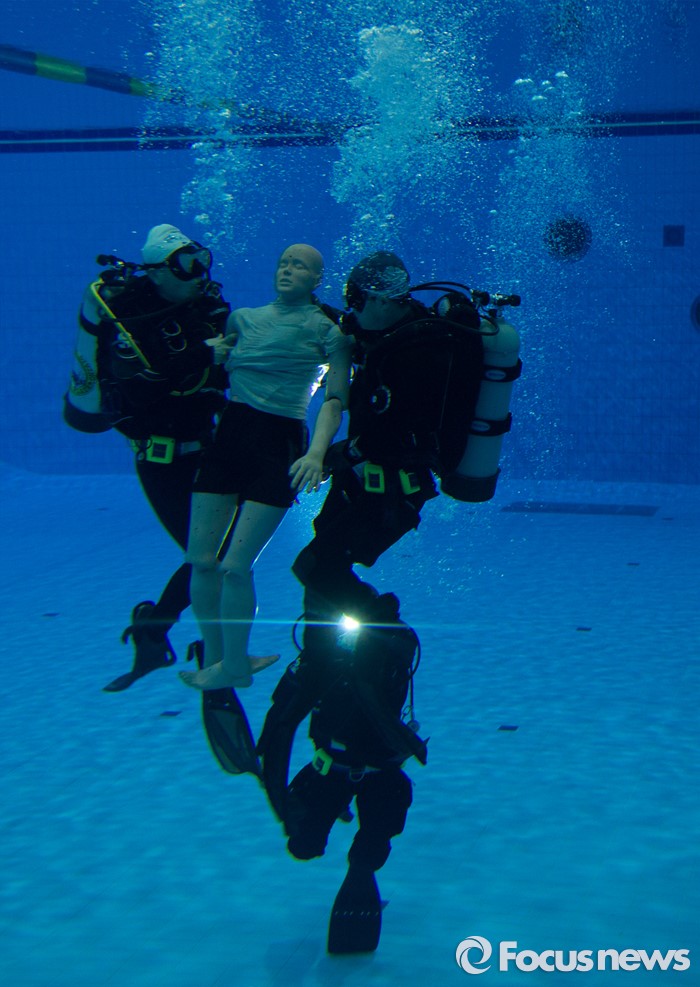 (대전=포커스뉴스) 21일 오후 대전 동구 용운국제수영장에서 충북 영동소방서 구조대원들이 동계 수난사고 인명구조훈련을 실시하고 있다.