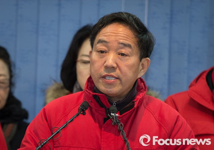 지난 2012년 18대 국회의원을 지낼 당시 마포갑이 지역구였던 강 예비후보는 21일 서울 여의도 국회 정론관에서 기자회견을 열고 "김 대표의 안 전 대법관 최고위원 지명은 선수에게 심판을 맡긴 격"이라며 강력히 항의했다.