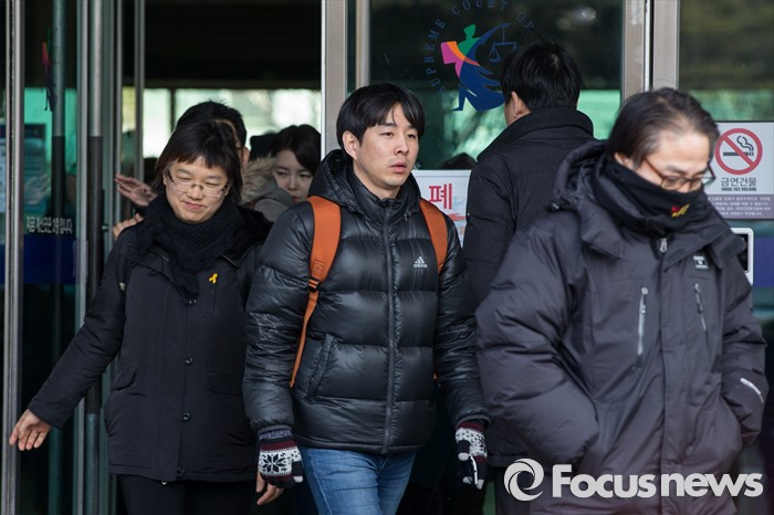 (서울=포커스뉴스) 21일 오후 서울 서초구 서울고등법원 별관에서 열린 법외노조 통보처분 취소소송 항소심 참관을 마친 전국교직원노동조합원들이 발걸음을 옮기고 있다.