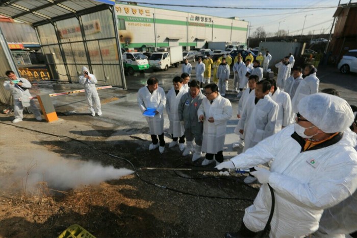 (평택=포커스뉴스) 이동필 농림축산식품부장관이 21일 오후 경기도 평택 평농푸드도축장을 방문해 구제역 방역실태를 점검하고 있다. <사진제공=농림축산식품부>