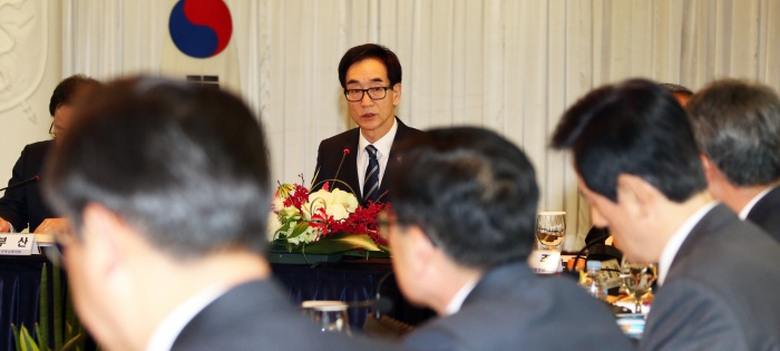 (부산=포커스뉴스) 이준식 교육부 장관이 21일 오후 부산 해운대 그랜드호텔에서 열린 전국 시·도교육감협의회 총회에 참석해 질문에 답변하고 있다. 이날 총회는 누리과정 예산 및 총회 상정 안건, 사무국 제안 안건 등을 논의했다. <사진제공=교육부>