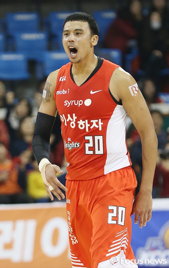 (서울=포커스뉴스) 21일 서울 잠실학생체육관에서 열린 2015-2016 프로농구 SK-동부 경기에서 SK 박승리가 4쿼터 동점 상황에서 다시 달아나는 3점슛을 연달아 2개를 성공시키고 환호하고 있다.