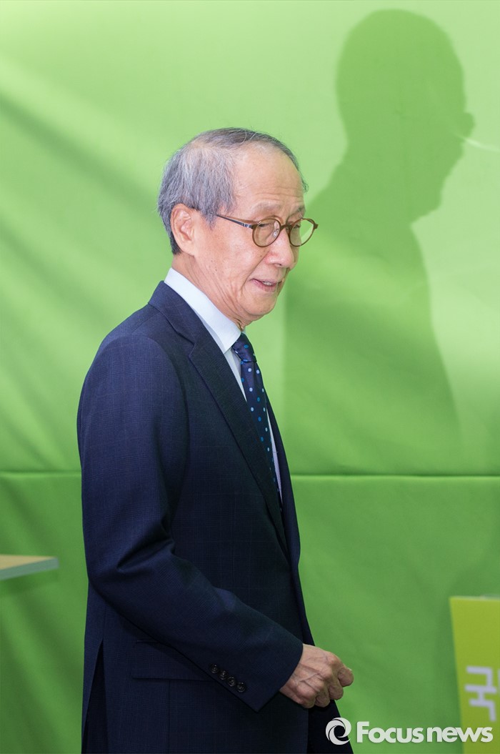 (서울=포커스뉴스) 국민의당(가칭) 창당준비위원회 공동 위원장직을 수락한 후 2주 만에 모습을 드러낸 윤여준 전 장관이 22일 오전 서울 마포구 국민의당 당사 기자회견장을 들어서고 있다.