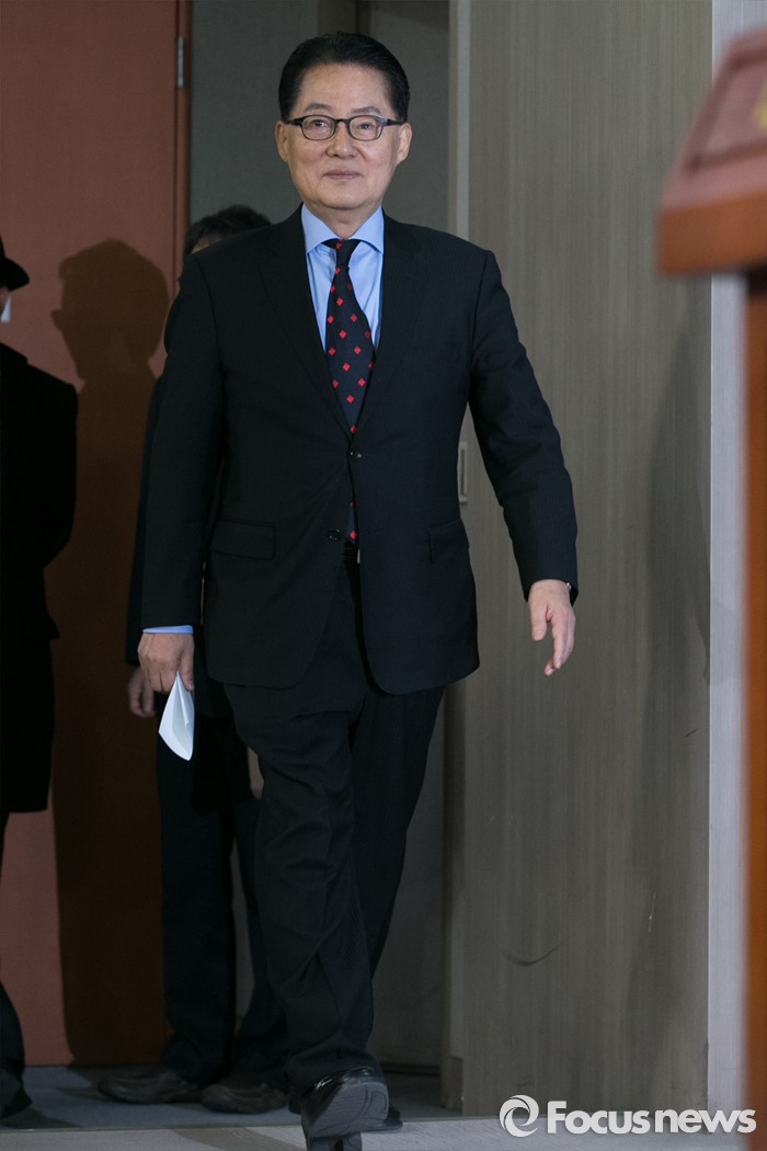 (서울=포커스뉴스) 박지원 더불어민주당 의원이 22일 오전 서울 여의도 국회 정론관에서 탈당 입장을 발표하기 위해 들어서고 있다.