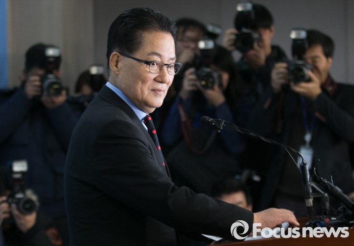 (서울=포커스뉴스) 박지원 더불어민주당 의원이 22일 오전 서울 여의도 국회 정론관에서 탈당 기자회견을 하고 있다.