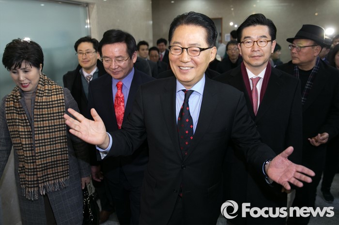 (서울=포커스뉴스) 박지원 더불어민주당 의원이 22일 오전 서울 여의도 국회 정론관에서 탈당 기자회견을 마친 뒤 이동하고 있다.