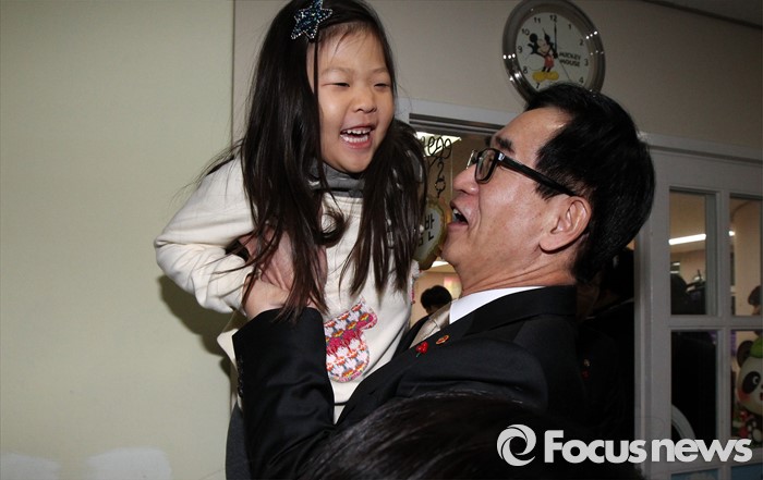 (서울=포커스뉴스) 이준식 사회부총리 겸 교육부장관이 22일 오전 서울 용산구 일민유치원을 찾아 학부모, 보육 관계자 등과 간담회를 열기 전 유치원생을 안아보고 있다.
