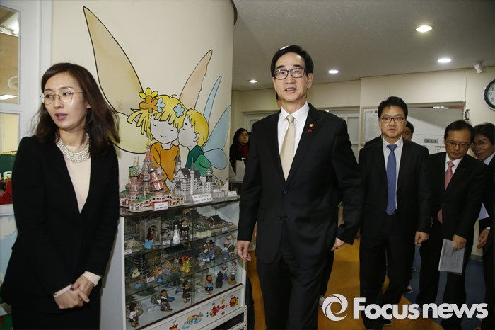 (서울=포커스뉴스) 이준식 사회부총리 겸 교육부장관이 22일 오전 서울 용산구 일민유치원을 찾아 학부모, 보육 관계자 등과 간담회를 열기 전 보육현장을 둘러보고 있다.