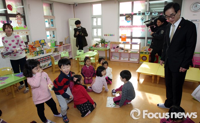 (서울=포커스뉴스) 이준식 사회부총리 겸 교육부장관이 22일 오전 서울 용산구 일민유치원을 찾아 학부모, 보육 관계자 등과 간담회를 열기 전 수업을 참관하고 있다.