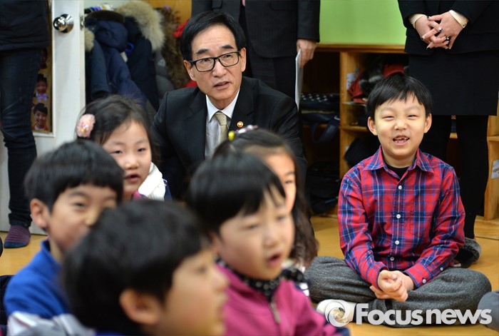 (서울=포커스뉴스) 이준식 사회부총리 겸 교육부장관이 22일 오전 서울 용산구 일민유치원을 찾아 학부모, 보육 관계자 등과 간담회를 열기 전 수업을 참관하고 있다.