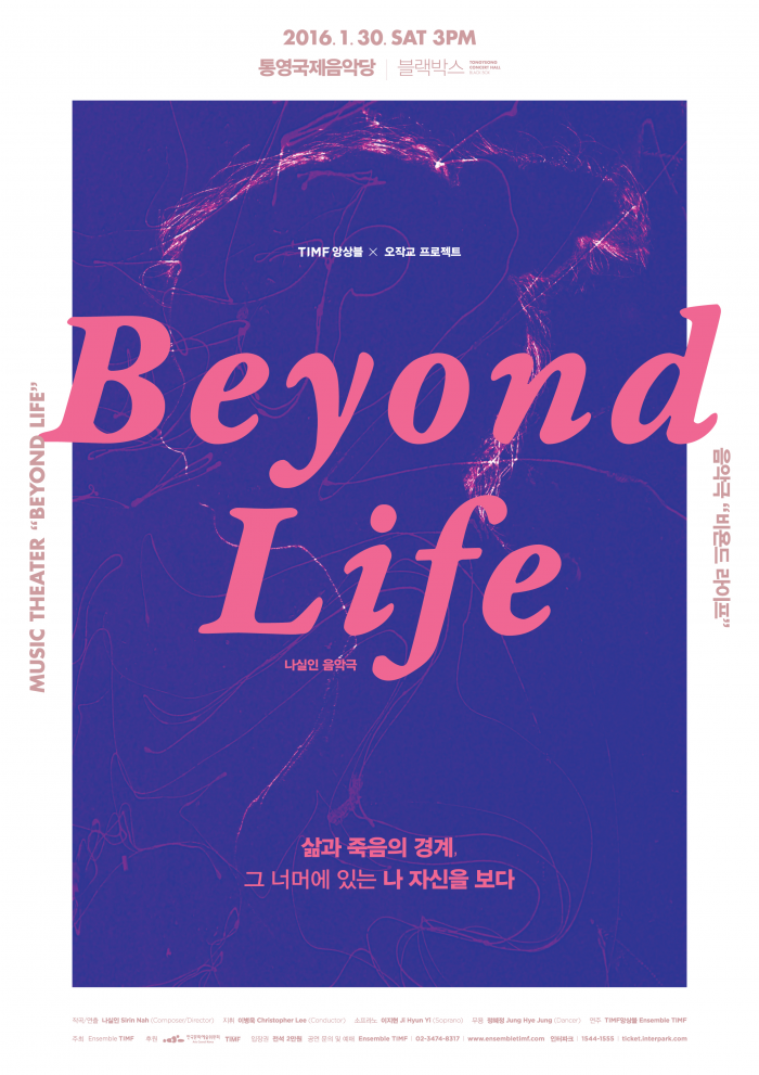 (서울=포커스뉴스) TIMF앙상블이 오는 30일 오후 3시 경남 통영 통영국제음악당 블랙박스에서 작곡가 나실인의 음악극 '비욘드 라이프(Beyond Life)'를 세계 초연으로 선보인다.