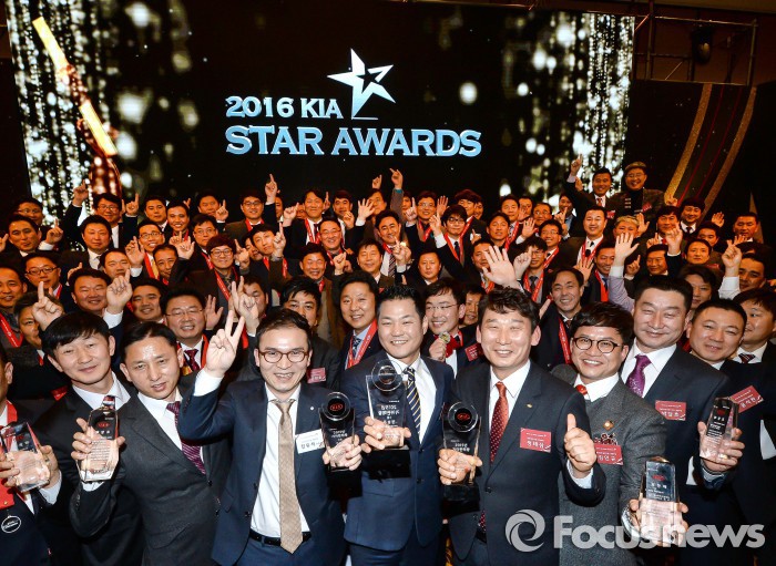 (서울=포커스뉴스) 기아자동차는 22일 서울 중구 밀레니엄 서울 힐튼 호텔에서 141명의 2015년 판매우수자들과 김창식 기아차 국내영업본부장 등 총 290여 명이 참석한 가운데 ‘2016 기아 스타 어워즈’를 개최했다고 밝혔다.