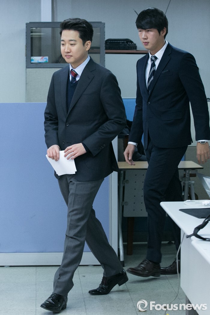 (서울=포커스뉴스) 이준석(왼쪽) 전 새누리당 비상대책위원장이 24일 오전 서울 여의도 새누리당사에서 20대 총선 출마선언 기자회견을 위해 입장하고 있다.