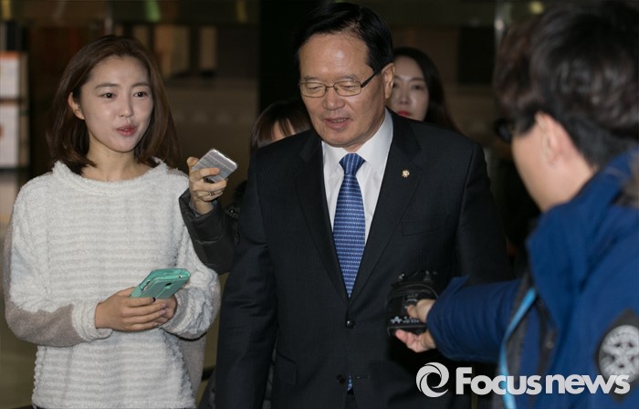 (서울=포커스뉴스) 정의화 국회의장이 25일 오전 서울 여의도 국회로 출근하며 취재진 질문을 받고 있다. 이날 새누리당 초·재선 의원 모임인 '아침소리'는 정 의장이 20대 총선 불출마 선언을 해야한다는 주장을 제기했다.