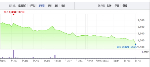 이어 이 연구원은 “경쟁사대비 높은 미청구공사(대금이 회수되지 않은 공사)로 최소 6000억원의 추가 손실이 인식될 수 있다”고 덧붙였다.대우조선해양의 주가 흐름<사진출처=네이버 캡쳐>