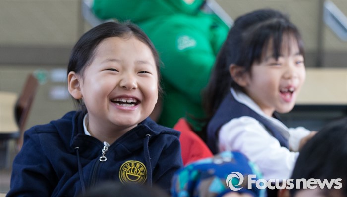 (청주=포커스뉴스) 한파가 이어진 가운데 25일 오전 충북 청주 대성초등학교가 개학식을 갖고 학사일정에 들어갔다. 1학년 학생이 미소를 보이고 있다.