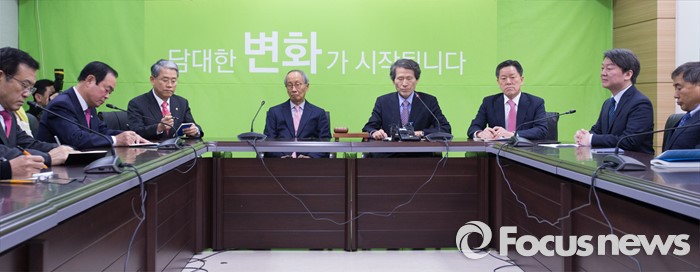 (서울=포커스뉴스)국민의당(가칭) 확대 기획조정회의가 25일 오전 서울 마포구 당사에서 열리고 있다. (오른쪽 두 번째부터) 안철수 인재영입위원장, 주승용 원내대표, 한상진 공동창준위원장, 윤여진 공동창준위원장