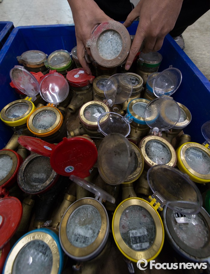 (서울=포커스뉴스) 15년 만에 찾아온 강력한 한파가 연일 계속되고 있는 25일 오전 서울 강남수도사업소에서 직원이 동파된 수도계량기를 정리하고 있다.