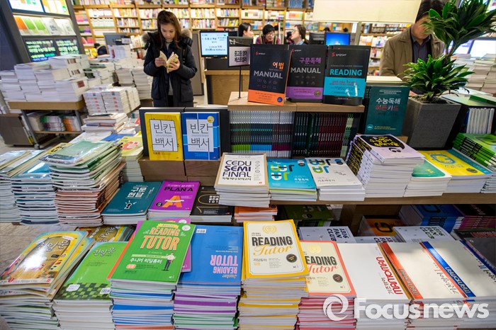 (서울=포커스뉴스) 서울 한 낮 기온이 영하권에 머물며 연일 강추위가 이어지고 있는 25일 오후 서울 종로구 교보문고 광화문점에서 개학을 앞둔 중고생들과 학부모들이 참고서를 보고 있다.