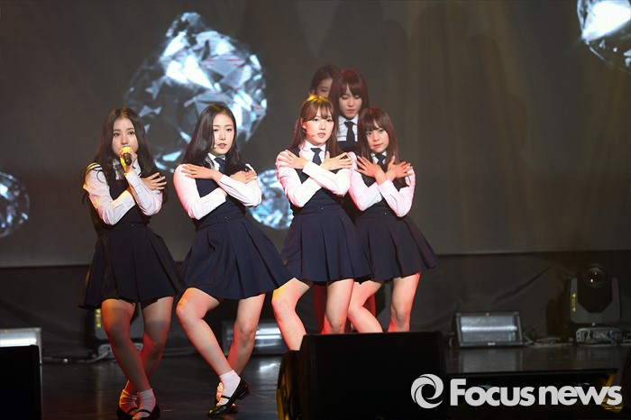 (서울=포커스뉴스) 25일 오후 서울 광진구 악스코리아에서 열린 걸그룹 여자친구의 세 번째 미니앨범 ‘SNOWFLAKE’ 발매 쇼케이스에 참석한 멤버들이 '유리구슬'의 무대를 선보이고 있다.