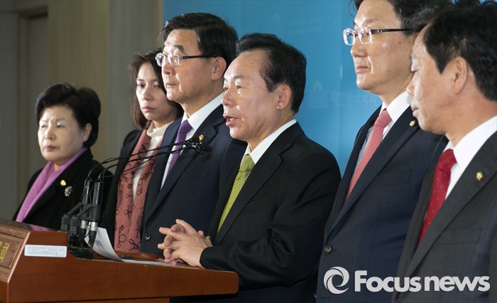 (서울=포커스뉴스) 이기권 고용노동부 장관과 이인제 새누리당 노동선진화특위원장 등 의원들이 25일 오후 서울 여의도 국회 정론관에서 노동개혁 2대 지침(일반해고 지침, 취업규칙 지침) 설명회를 마친 뒤 브리핑을 하고 있다.