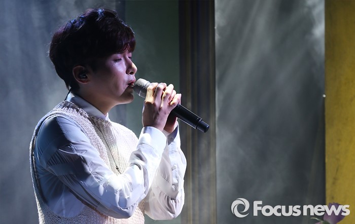 (서울=포커스뉴스) 25일 오후 서울 용산구 현대카드 언더스테이지에서 열린 미니앨범 '어린왕자' 쇼케이스에 참석한 가수 려욱이 신곡 '알 수도 있는 사람'의 무대를 선보이고 있다.