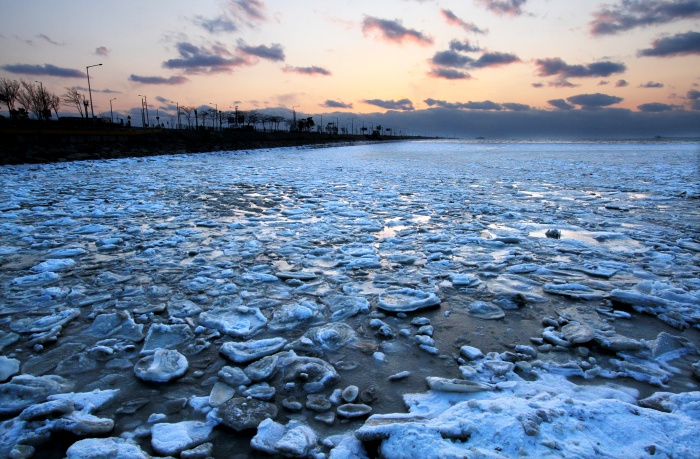 (시흥=포커스뉴스) 연일 계속된 매서운 한파로 경기도 시흥시 오이도 앞 바다가 얼어 붙으며 다양한 얼음 조각품을 만들어 주고 있다.<사진제공=이관희사진가>