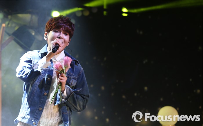 (서울=포커스뉴스) 25일 오후 서울 용산구 현대카드 언더스테이지에서 열린 미니앨범 '어린왕자' 쇼케이스에 참석한 가수 려욱이 신곡 '그대'의 무대를 선보이고 있다.