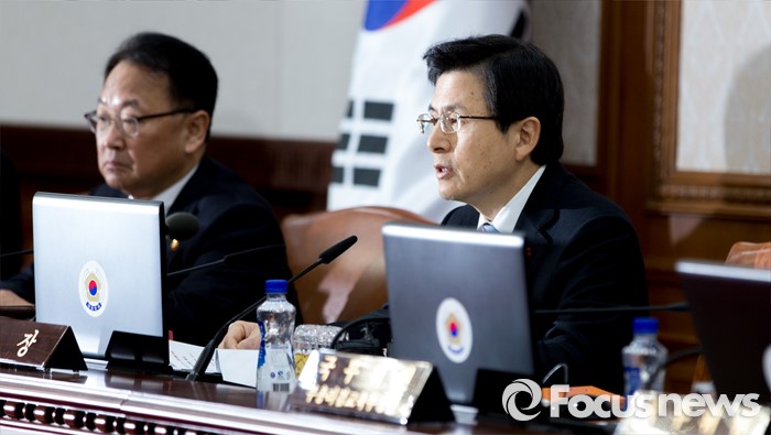 (서울=포커스뉴스) 황교안(오른쪽) 국무총리가 26일 오전 서울 종로구 정부서울청사에서 국무회의에 참석해 모두발언을 하고 있다.