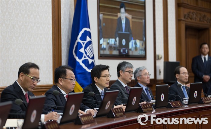(서울=포커스뉴스) 황교안 국무총리가 26일 오전 서울 종로구 정부서울청사에서 국무회의에 참석해 모두발언을 하고 있다.