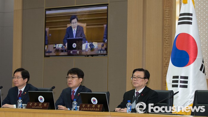 (세종=포커스뉴스) 26일 오전 세종시 정부세종청사 국무회의장에서 열린 서울-세종 영상 국무회의에서 세종청사에 참석한 국무위원들이 황교안 총리의 모두발언을 경청하고 있다.