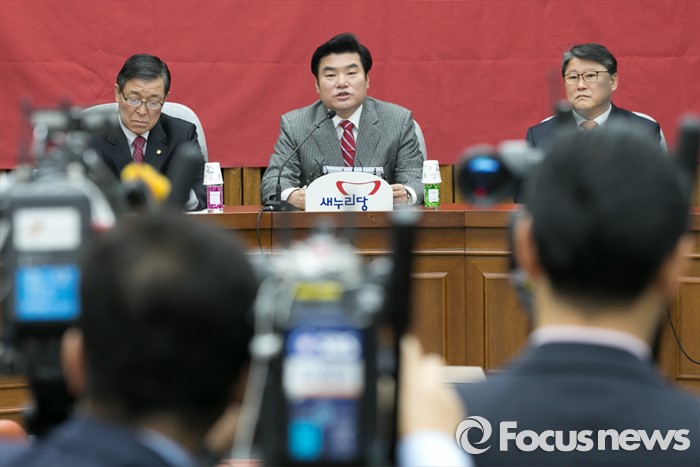 (서울=포커스뉴스) 원유철(가운데) 새누리당 원내대표가 26일 오전 서울 여의도 국회에서 열린 원내대책회의에 참석해 모두발언하고 있다.