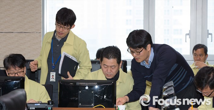 (세종=포커스뉴스) 26일 오전 세종시 정부세종청사 국토교통부 제주공항체류여객 비상수송대책본부에서 관계자들이 제주도 인근 운항상황을 점검하고 있다.