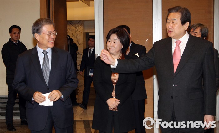 | △ 티타임 갖는 여야 당대표 |