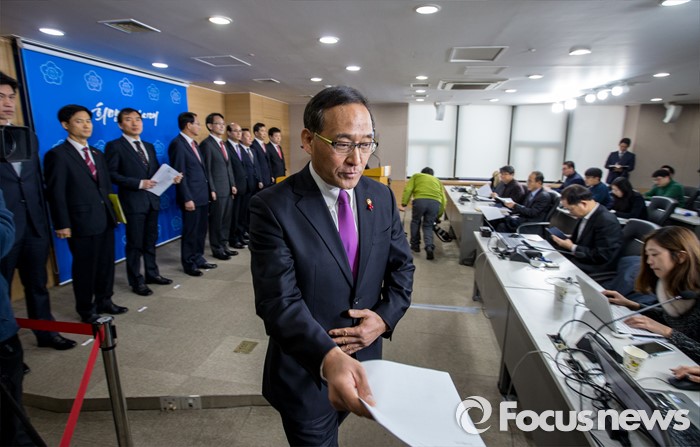 (서울=포커스뉴스) 홍윤식 행정자치부 장관이 지난 25일 오전 서울 종로구 정부서울청사에서 2016년 국가혁신 분야 업무보고를 마친 뒤 브리핑실을 나서고 있다. 이날 업무보고에 국민권익위원회, 국민안전처, 법무부, 법제처, 식약처, 원자력안전위원회, 환경부, 행정자치부 등이 함께 했다.