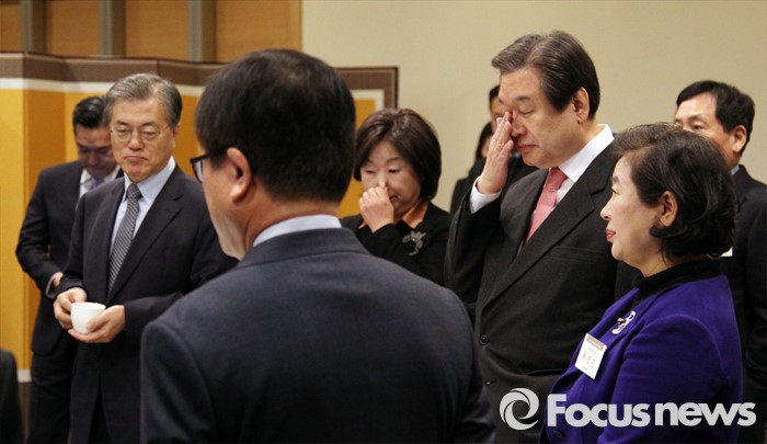 (서울=포커스뉴스) 중장기 어젠다 추진 전략회의가 26일 대한상공회의소 국제회의장에서 열린 가운데 회의전 3당 대표와 기업인들이 티타임을 갖고 있다.