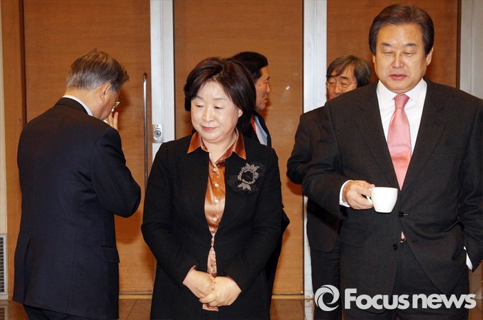 (서울=포커스뉴스) 중장기 어젠다 추진 전략회의가 26일 대한상공회의소 국제회의장에서 열린 가운데 회의전 3당 대표와 기업인들이 티타임을 갖고 있다.