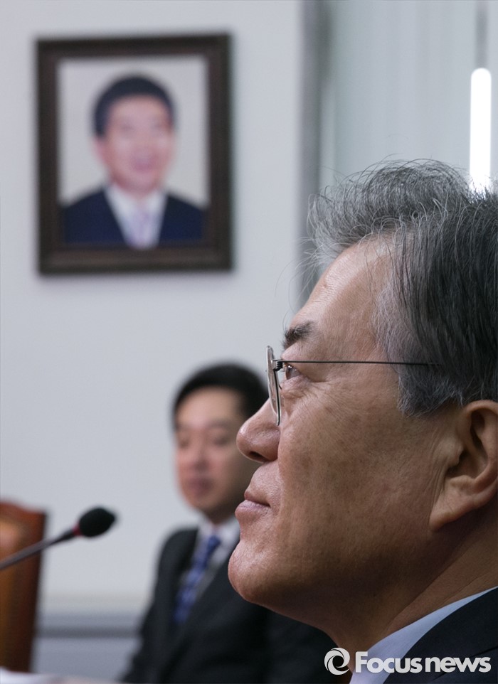 (서울=포커스뉴스) 26일 오전 서울 여의도 국회에서 열린 더불어민주당 인재영입위원회 1차 회의에 참석한 문재인 대표가 참석자들의 인사말을 듣고 있다.