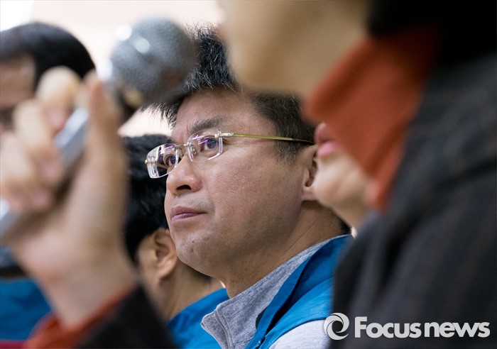 (서울=포커스뉴스) 26일 오전 서울 서대문구 전국교직원노동조합 대회의실에서 변성호 전교조 위원장이 법외노조통보 항소심 판결과 교육부 후속조치에 대한 전교조 입장 발표 기자회견에 참석해 변호인의 발언을 경청하고 있다.