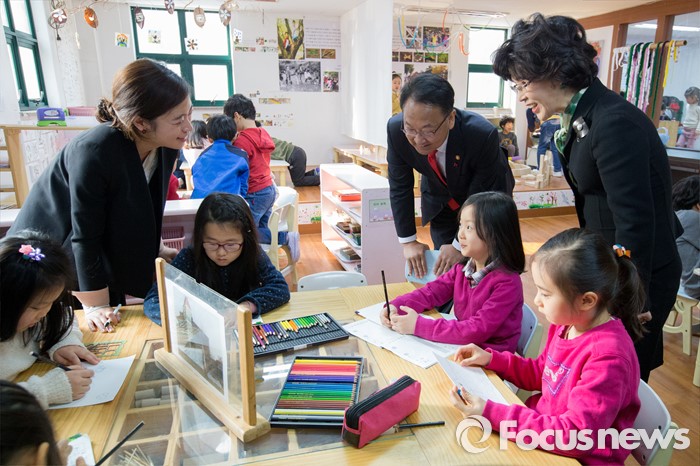 (서울=포커스뉴스) 누리과정 관련 현장을 방문한 유일호 경제부총리 겸 기획재정부 장관이 26일 오전 서울 강서구 보라유치원에 방문해 아이들이 노는 모습을 지켜보고 있다.