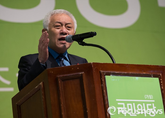 (전주=포커스뉴스) 국민의당 김한길 의원이 26일 오전 전주시 완산구 화산체육관에서 열린 전북도당 창당대회에 참석해 축사를 하고 있다.
