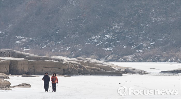 (철원=포커스뉴스) 26일 오전 강원 철원군 한탄강 일대에서 여행객들이 얼음트래킹을 즐기고 있다.