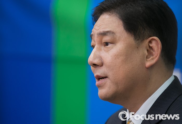 (서울=포커스뉴스) 김병기 전 국가정보원 인사처장이 26일 오후 서울 여의도 국회에서 열린 더불어민주당 인재영입 기자회견에 참석해 인사말을 하고 있다.