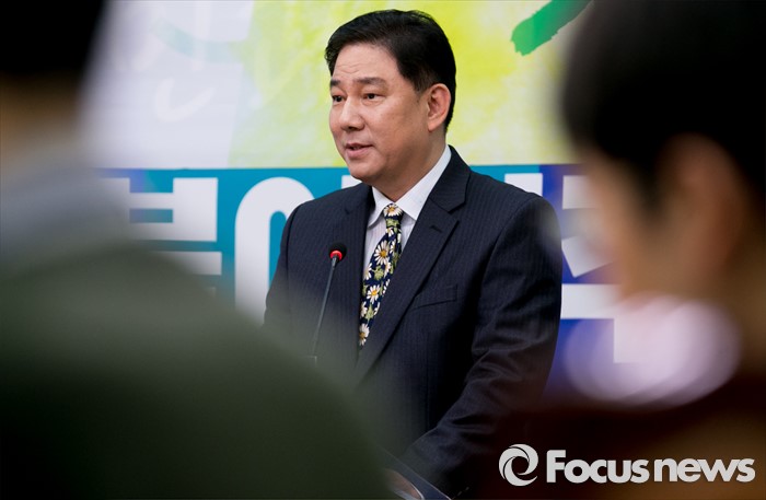 (서울=포커스뉴스) 김병기 전 국가정보원 인사처장이 26일 오후 서울 여의도 국회에서 열린 더불어민주당 인재영입 기자회견에 참석해 인사말을 하고 있다.