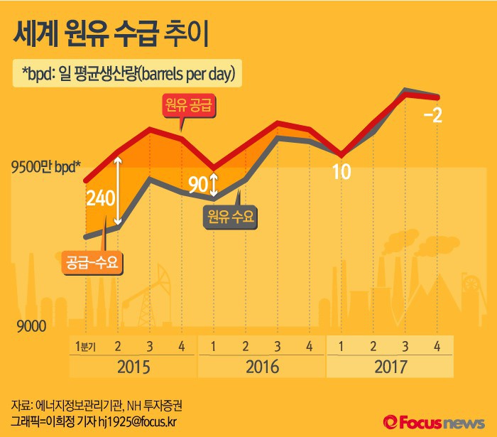(서울=포커스뉴스)국제에너지기구(IEA)에 따르면 세계 원유 공급은 최소 내년까지 현재 수준을 초과할 것이란 전망이다.