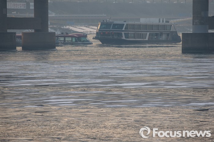 (서울=포커스뉴스) 26일 오후 서울 한강 영동대교 인근을 지나던 한강유람선이 침수, 구조대원들이 구조활동과 견인 작업을 하고 있다.