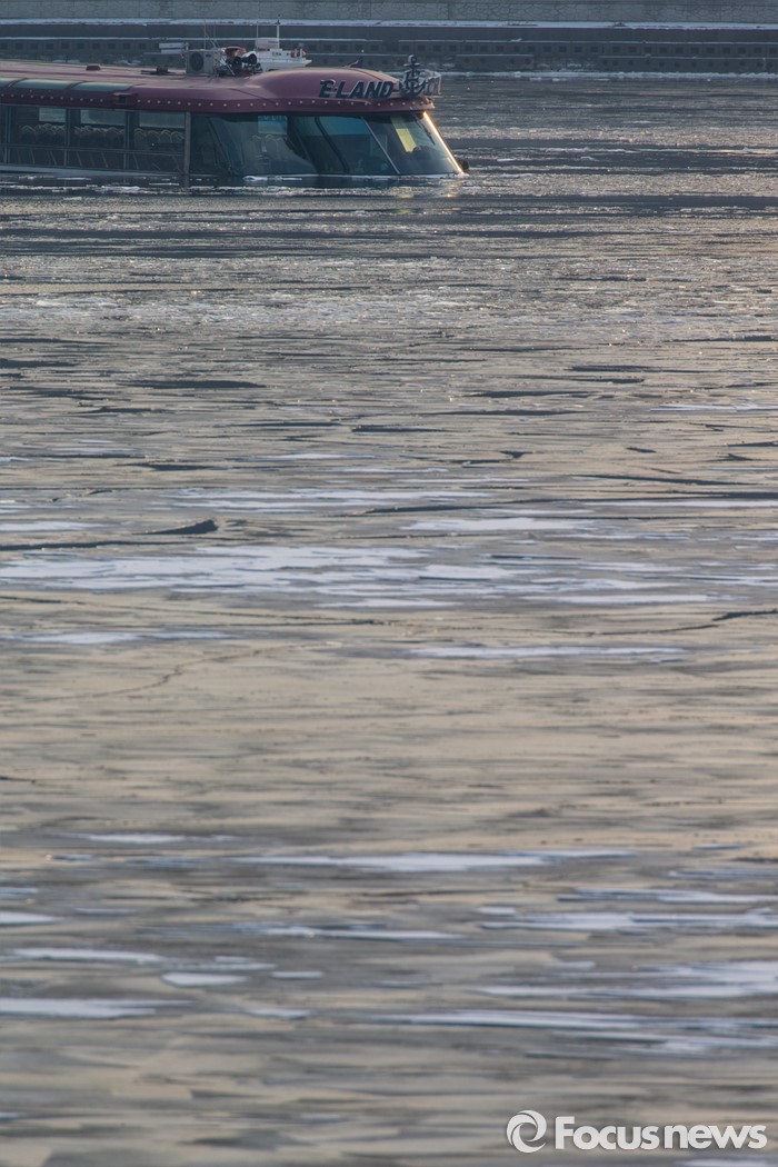 (서울=포커스뉴스) 26일 오후 서울 한강 영동대교 인근을 지나던 한강유람선이 침수, 구조대원들이 구조활동과 견인 작업을 하고 있다.